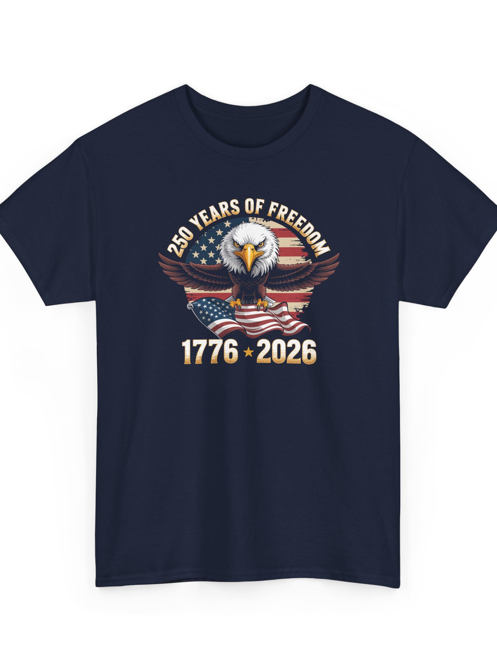 This classic cotton tee carries a bold, patriotic scene that feels like a rallying cry you can wear. A fierce bald eagle spreads its wings over waving American flags, with the years “1776 • 2026” and the phrase “250 Years of Freedom” anchoring the design. The shirt sits comfortably in a timeless, boxy cut that layers easily under a jacket or stands strong on its own. Wear it to parades, backyard barbecues, or quiet moments of reflection—this tee holds a history-forward energy without shouting for attention. The printed sleeves and neck details add subtle craftsmanship that enthusiasts will notice, while the soft, sturdy cotton keeps the focus on the artwork and the meaning behind it.