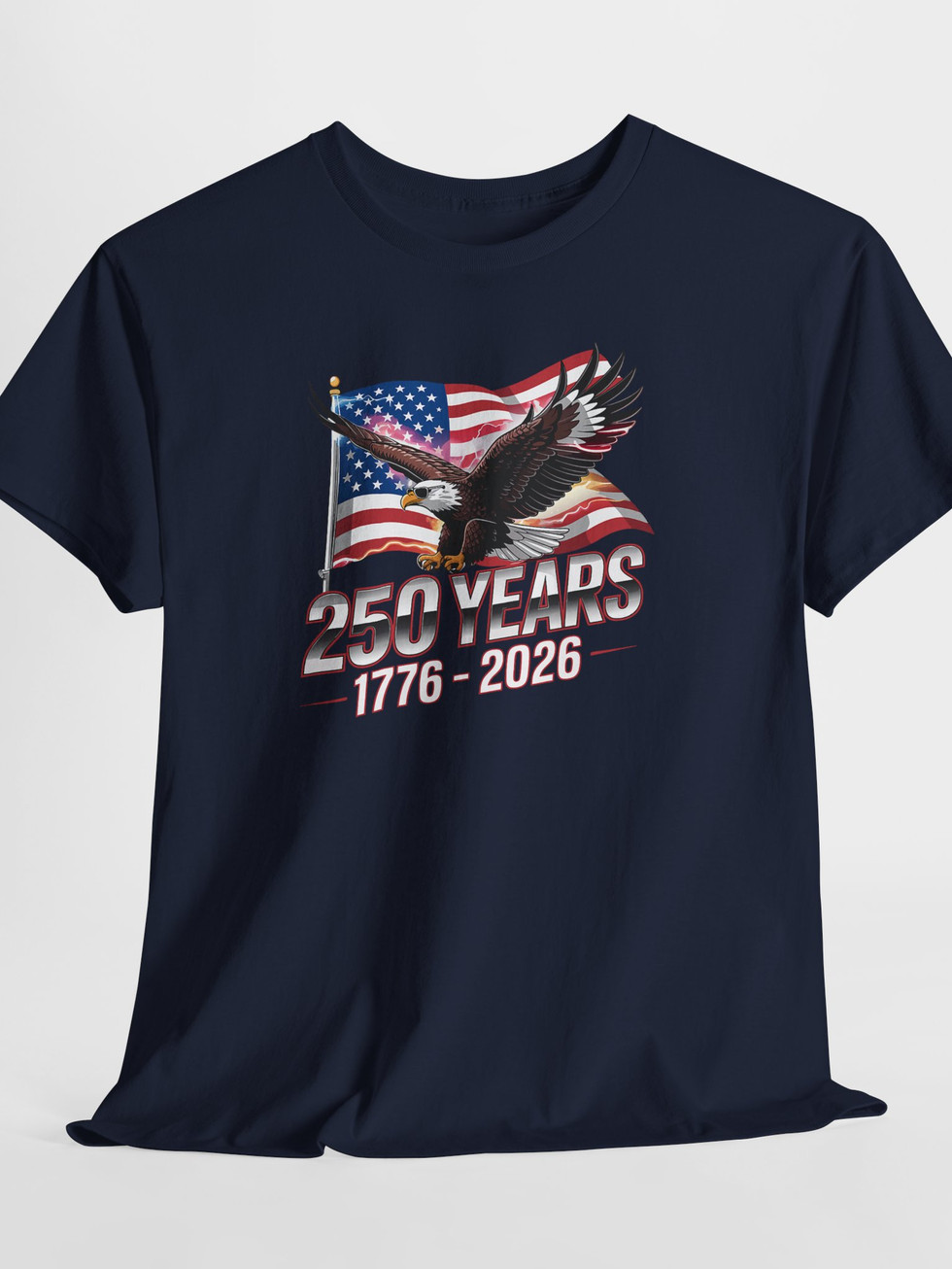 250 Years 1776–2026 Eagle & Flag T-Shirt — American Independence Patriotic Tee