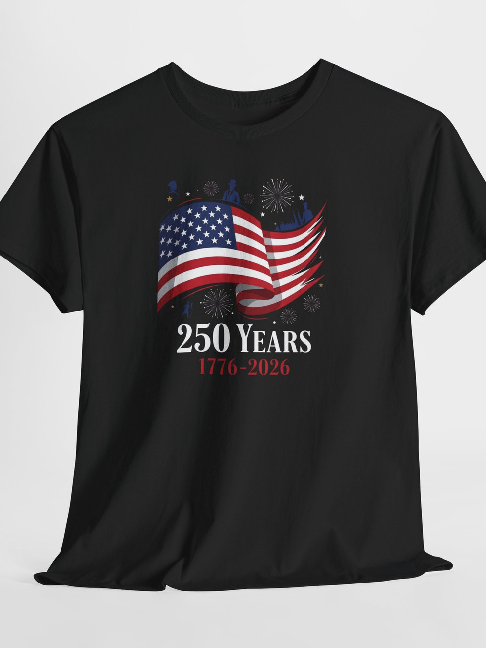This soft, classic-fit tee carries a quiet, respectful celebration of 250 years of American history. The muted natural cotton acts like a vintage backdrop for a waving flag graphic and the subtle “250 Years 1776–2026” text. It breathes easy and moves with you—good for backyard parades, community commemorations, or low-key holiday gatherings where comfort and understated pride matter more than flash. Lightweight yet sturdy, it wears in nicely and keeps a neat neckline thanks to a ribbed collar. The result is a comfortable everyday shirt that feels familiar from the first wear and keeps attention on the sentiment rather than the hype.
