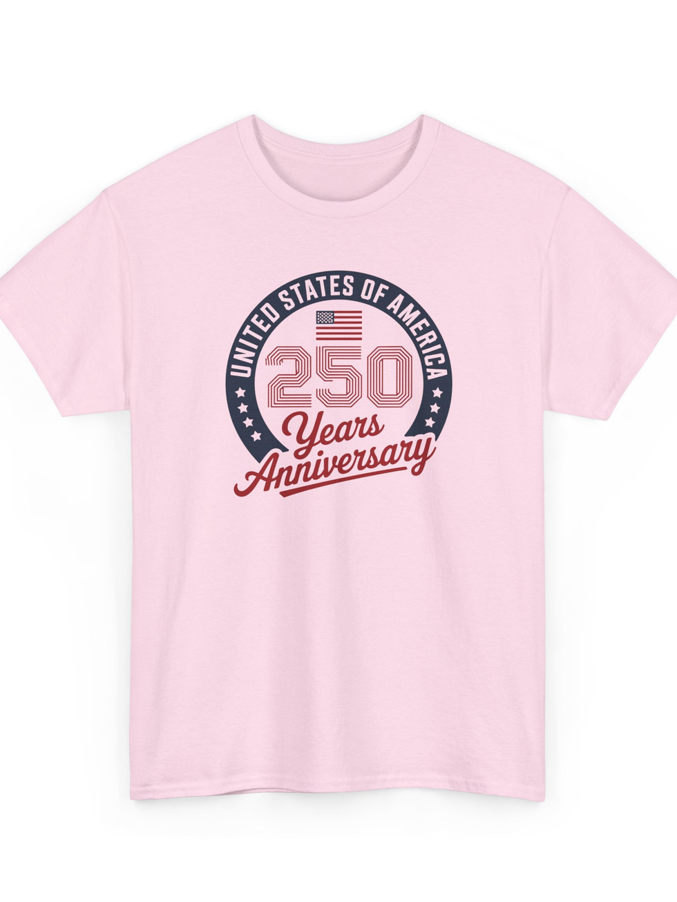 Celebrate a long lineage with a soft, timeless tee that wears like a keepsake. This classic crew neck features a vintage-inspired circular emblem reading “250 Years Anniversary” with subtle red, white and blue accents. The print sits centered on the chest like a commemorative patch—weathered but crisp—inviting quiet pride and everyday wear. Wear it to backyard barbecues, local parades, or easy afternoons with family. The relaxed cut slides over layers and moves with you—laundry after laundry—while the breathable cotton keeps it feeling lived-in and familiar. It’s the kind of shirt that joins moments and memories without shouting for attention.