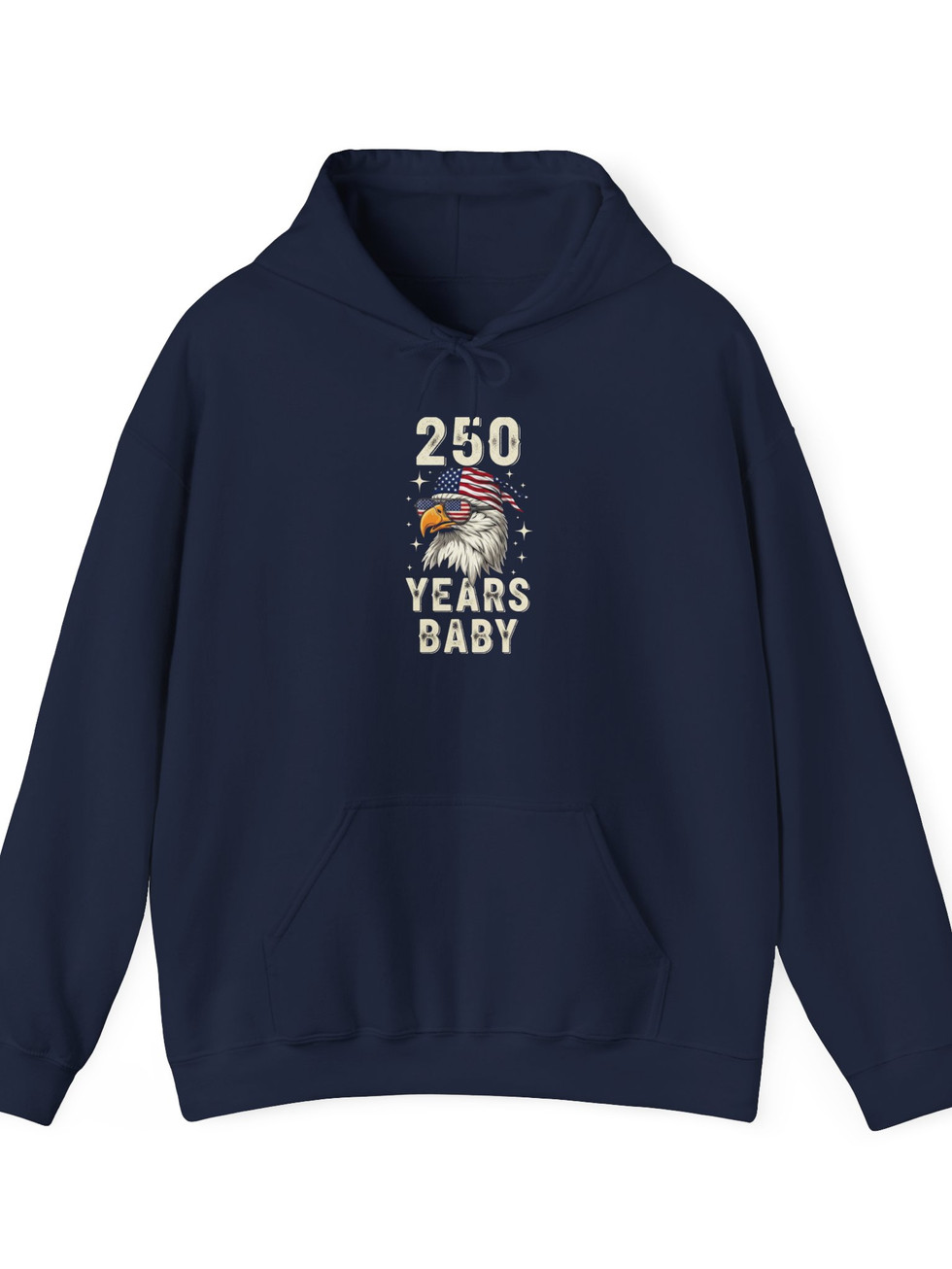 Slip into a hoodie that feels like an inside joke between you and the open road. This midweight pullover pairs a worn-in, vintage-style graphic — a proud eagle and bold "250 Years Baby" lettering — with a soft, sturdy fabric that keeps mornings crisp and evenings easy. The kangaroo pocket warms your hands, the double-lined hood tucks out wind and noise, and the classic fit layers naturally over tees or under jackets. Wear it to sunrise rides, late-night bonfires, or when you want to let a little rugged personality lead the conversation.