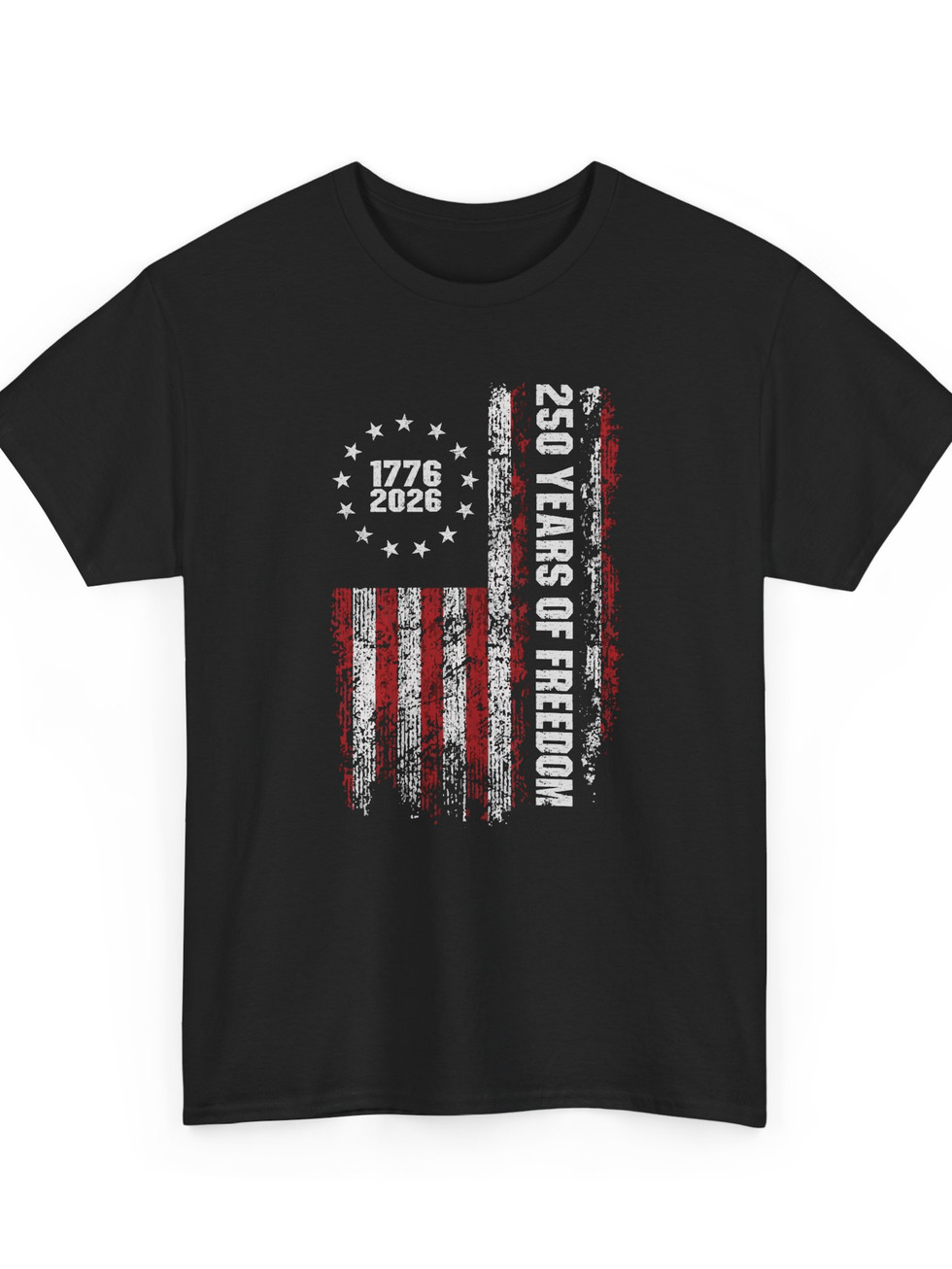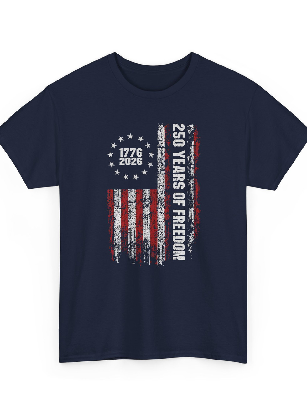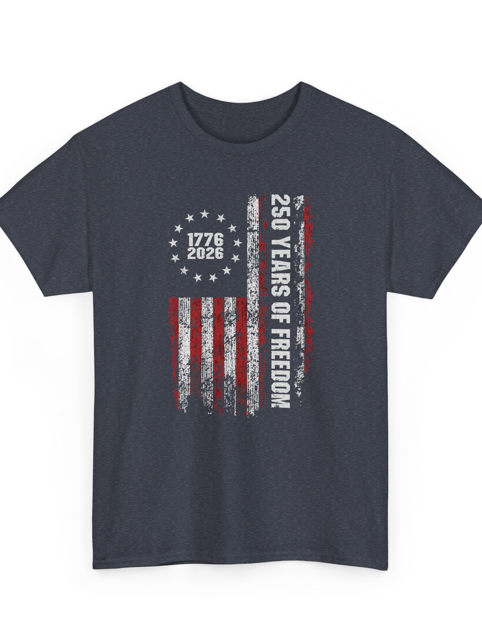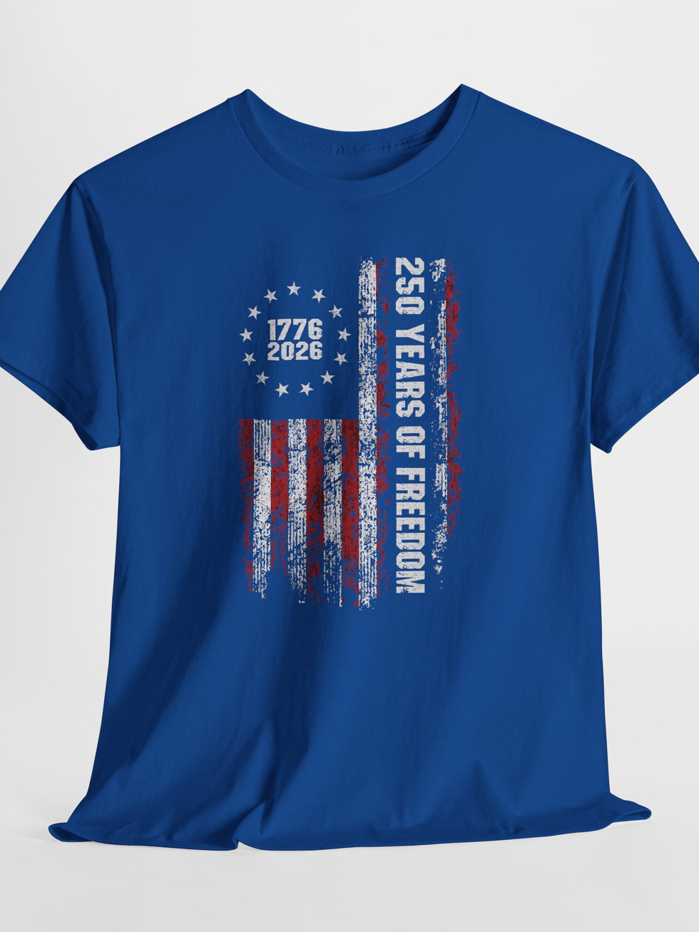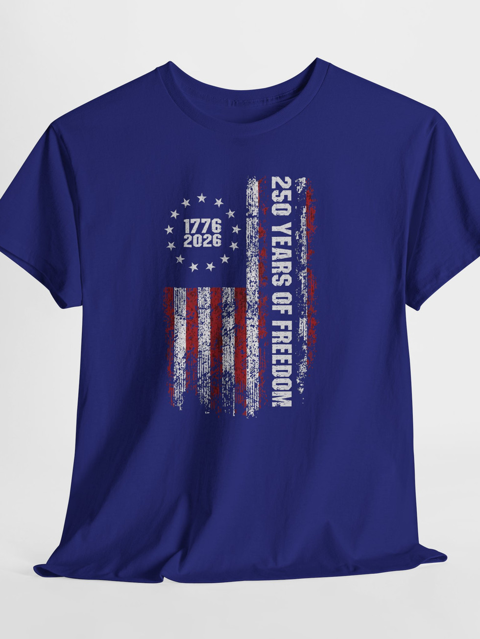 250 Years of Freedom Flag T-Shirt — 1776-2026 Patriotic Graphic Tee