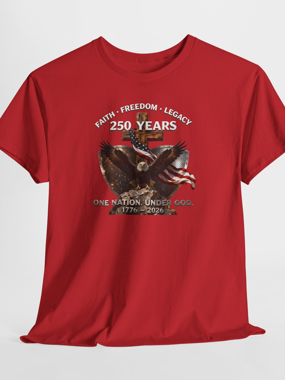 250 Years Patriotic Eagle T-Shirt — 'Faith • Freedom • Legacy' 1776–2026