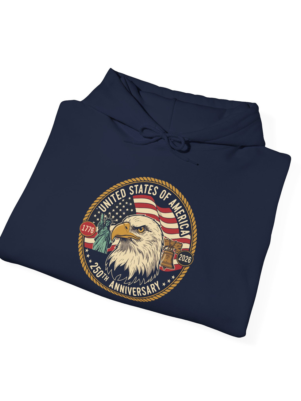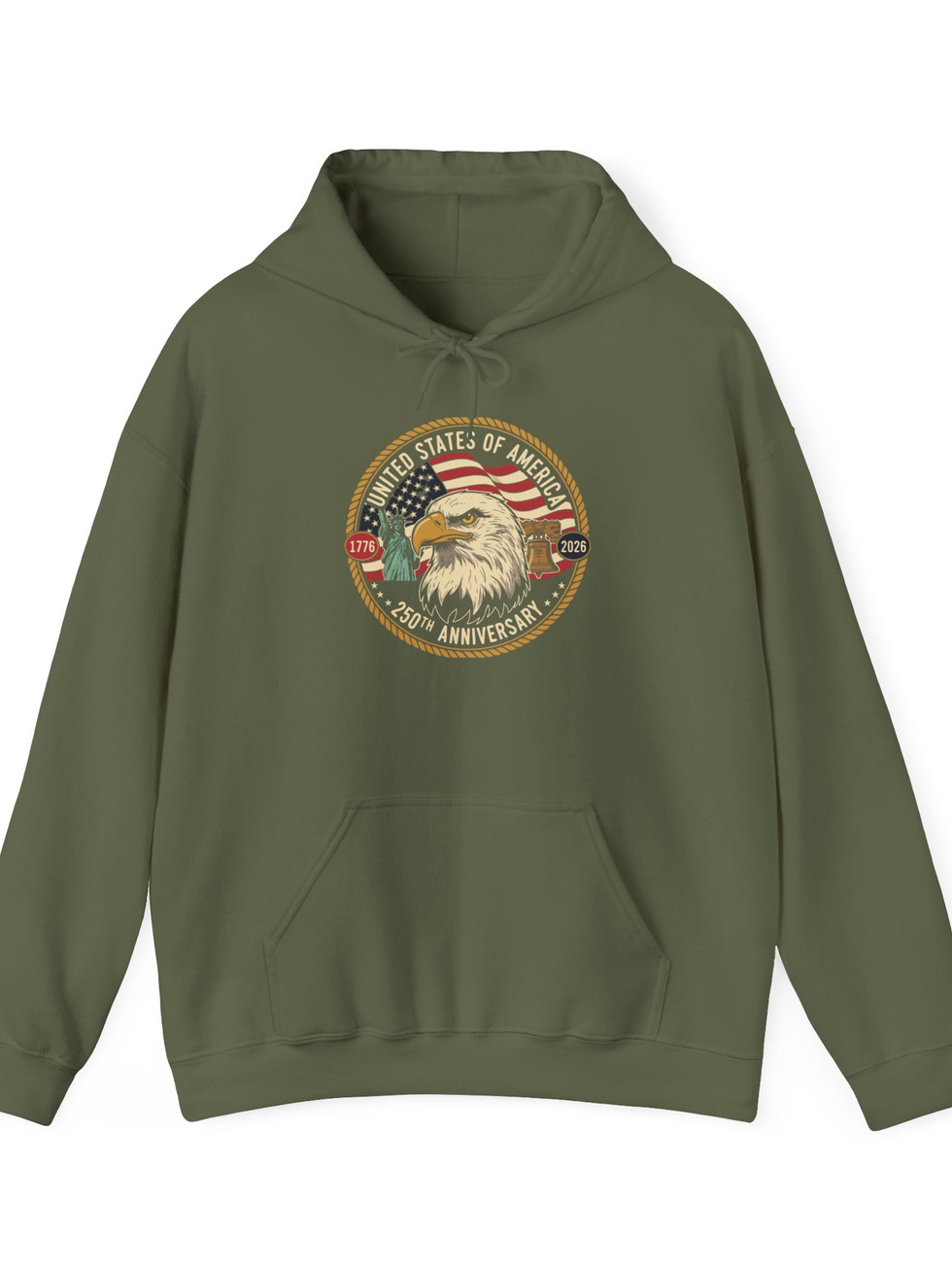 This heavyweight hoodie carries a quiet, steady pride — a soft, warm layer built to outlast the seasons. A bold eagle emblem sits over the chest, framed by vintage flag tones and a worn, crest-like border that reads like a veteran’s patch. It settles into your routine: morning coffee on the porch, road-trip miles, chilly evenings by the fire. The fit is classic and roomy, with a double-lined hood and color-matched drawcord for a pulled-together look. Pouch pockets keep hands warm; the fabric holds its shape wash after wash. This is for people who prefer garments with character — functional, durable, and slightly nostalgic in feel.