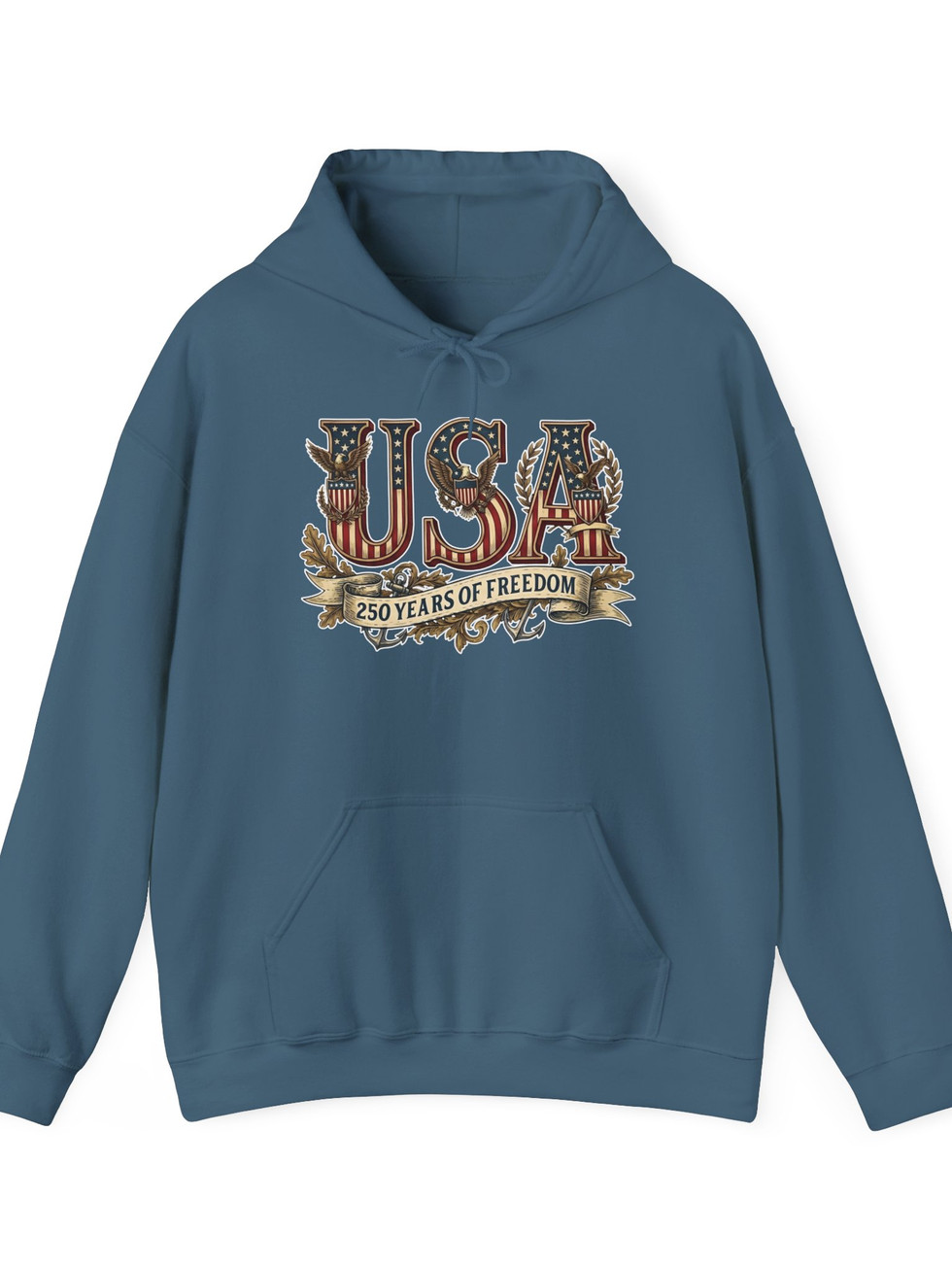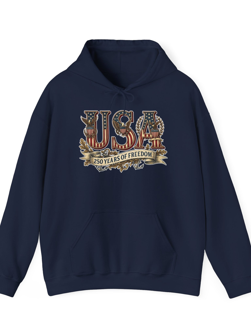 Soft, warm, and quietly bold — this pullover hooded sweatshirt wraps you in comfort while celebrating a vintage, Americana spirit. The distressed USA graphic sits across the chest with subtle foliage and banner detailing, giving an heirloom, worn-in look that reads like a memory rather than a logo. The roomy kangaroo pocket and double-lined hood invite slow mornings and outdoor walks. It layers easily over tees for backyard gatherings or pairs with jeans for casual weekends when you want comfort without sacrificing character. Finished with color-matched drawcords and a classic fit, it feels lived-in from day one and keeps its shape through repeated wear.