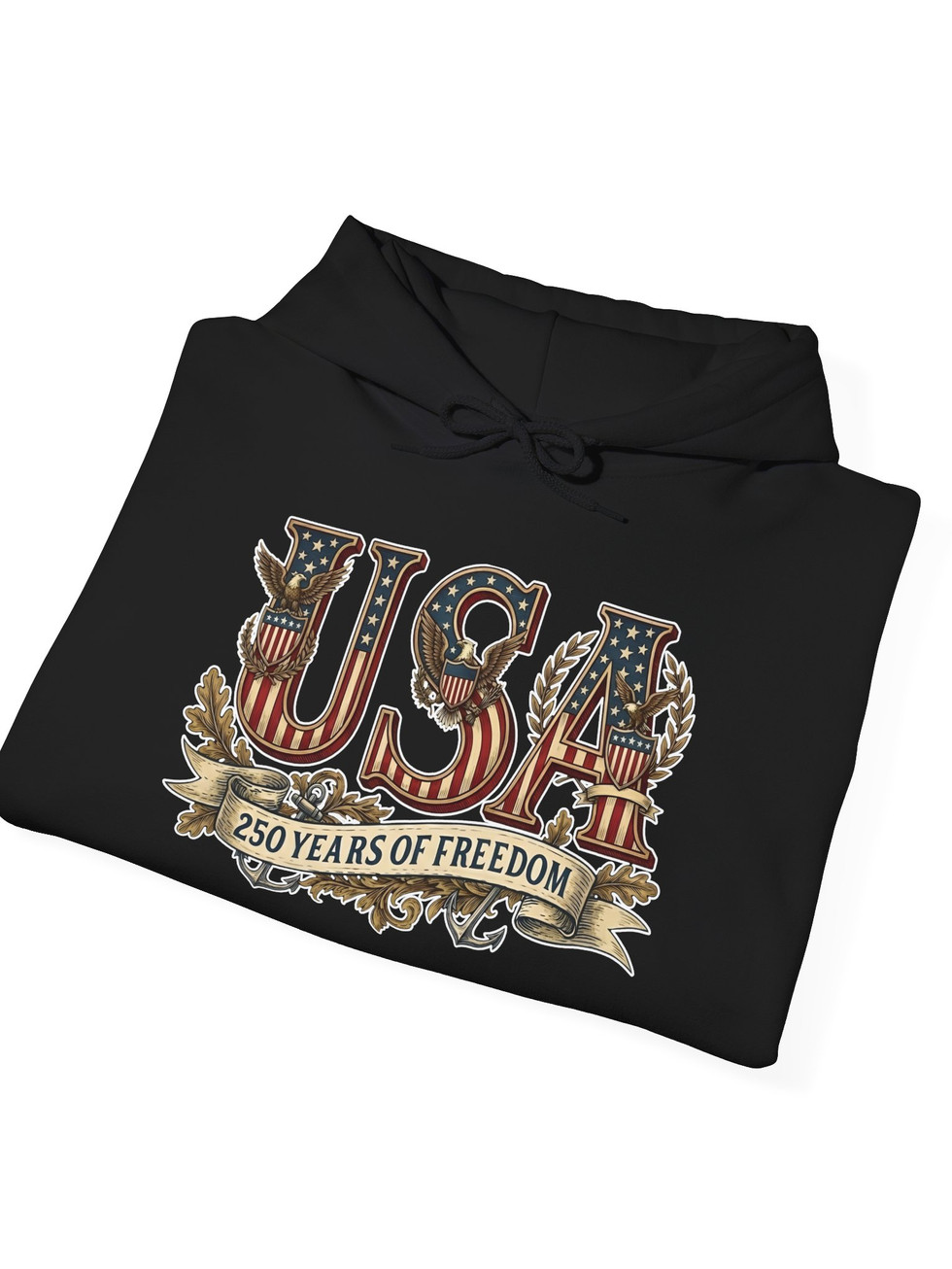 USA 250 Years of Freedom — Vintage Patriotic American Flag Hoodie Sweatshirt